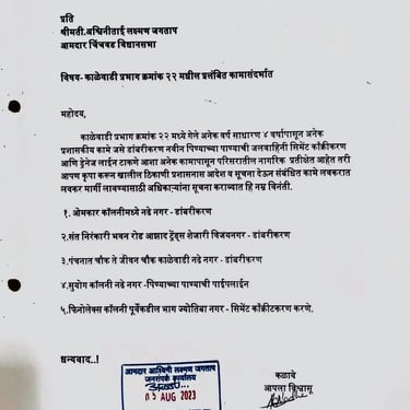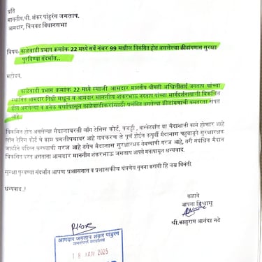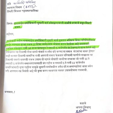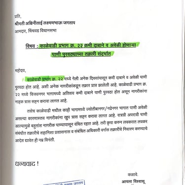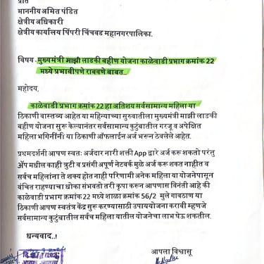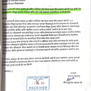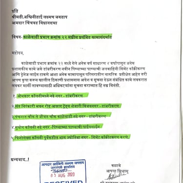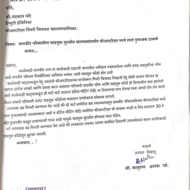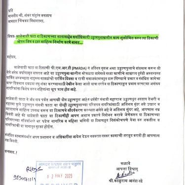 नागरिकांकडून येणारे अर्ज, तक्रारी, सूचना आणि सामाजिक पत्रव्यवहार वेळेत व आदराने हाताळणे ही आमची प्राथमिकता आहे. प्रत्येक व्यक्तीचा आवाज ऐकून त्यावर योग्य ती नोंद घेऊन संबंधित विभागांपर्यंत माहिती पोहोचवली जाते. पारदर्शक संवादामुळे समस्यांचे निराकरण जलद होते आणि नागरिकांचा विश्वास अधिक दृढ होतो.