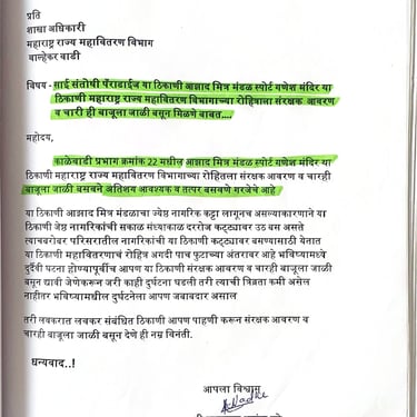 आमच्या भागात मोठ्या प्रमाणावर वृक्षारोपण करून पर्यावरण संरक्षणाला प्राधान्य दिले आहे. रस्त्याच्या दुतर्फा, शाळा परिसर व मोकळ्या जागांवर झाडे लावून परिसर हिरवागार व प्रदूषणमुक्त ठेवण्याचा आमचा प्रयत्न आहे.