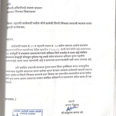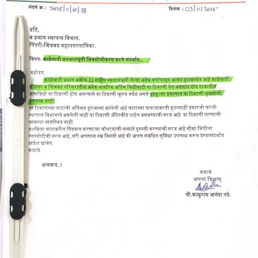 पिंपरी-चिंचवड महानगरपालिकेच्या 14 मे 2025 रोजी प्रसिद्ध झालेल्या नव्या विकास आराखड्यात काळेवाडी प्रभाग क्र.22 मधील मोठ्या रहिवासी भागावर गार्डन (आर. क्र. 4/39) व खेळाचे मैदान (आर. क्र. 4/44) अशी आरक्षणे टाकण्यात आली होती, ज्यामुळे सुमारे 30 वर्षांपासून राहणाऱ्या अनेक गरीब व मध्यमवर्गीयांचे पक्के घरे बाधित होत होती.