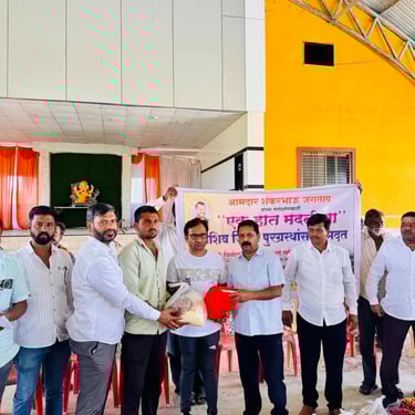 आमदार शंकरभाऊ जगताप यांच्या मार्गदर्शनाखाली पुणे जिल्हा नियोजन समिती सदस्य काळुराम नढे यांच्या माध्यमातून पिंपरी-चिंचवडमधील सर्व सहकाऱ्यांच्या सहकार्याने परंडा तालुक्यातील चिंचपूर, पांढरेवाडी, साखरेवाडी, लांडेवाडी व लोखंडेवाडी येथील पूरग्रस्त शेतकरी बांधवांना ४५० जीवनावश्यक मदत किट्स (धान्य, किराणा, कपडे व ब्लँकेट) वाटप करण्यात आले.